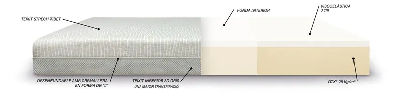 El Colchón Tibet 6cm Visco proporciona una sensación térmica equilibrada, adecuada para quienes prefieren más o menos calor durante el sueño. Es adecuado para personas de todas las edades y es perfecto para hoteles de gama estándar, hoteles de gama media y residencias de gente mayor. Además, su diseño incluye un acabado con teixit 3D que aïlla de la calor a l’estiu, asegurando que te mantengas fresco incluso en climas cálidos.